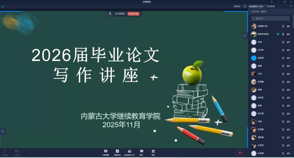 学院2026届学历继续教育毕业生毕业论文工作于2025年11月中旬正式启动。学院高度重视此项工作,聘请了学校各专业经验丰富的论文指导教师,从选题确定、框架搭建、内容撰写、格式规范等多个环节进行指导,帮助学生解决写作过程中遇到的各类问题,提升论文写作质量。