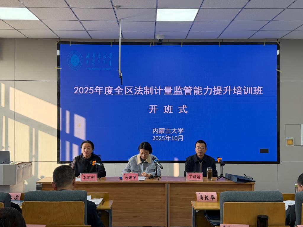 为进一步提升自治区法制计量监管队伍的专业素养和履职能力,10月21日,由内蒙古自治区市场监督管理局主办、内蒙古大学继续教育学院承办的“2025年全区法制计量监管能力提升培训班”在我校赛罕校区开班。内蒙古自治区市场监督管理局计量处处长马俊华、内蒙古大学继续教育学院院长郑丽明、重庆市计量质量检测研究院正高级工程师丁跃清出席了开班式。